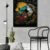 Golden round frame painting that brightens up your bedroom with style and grace.