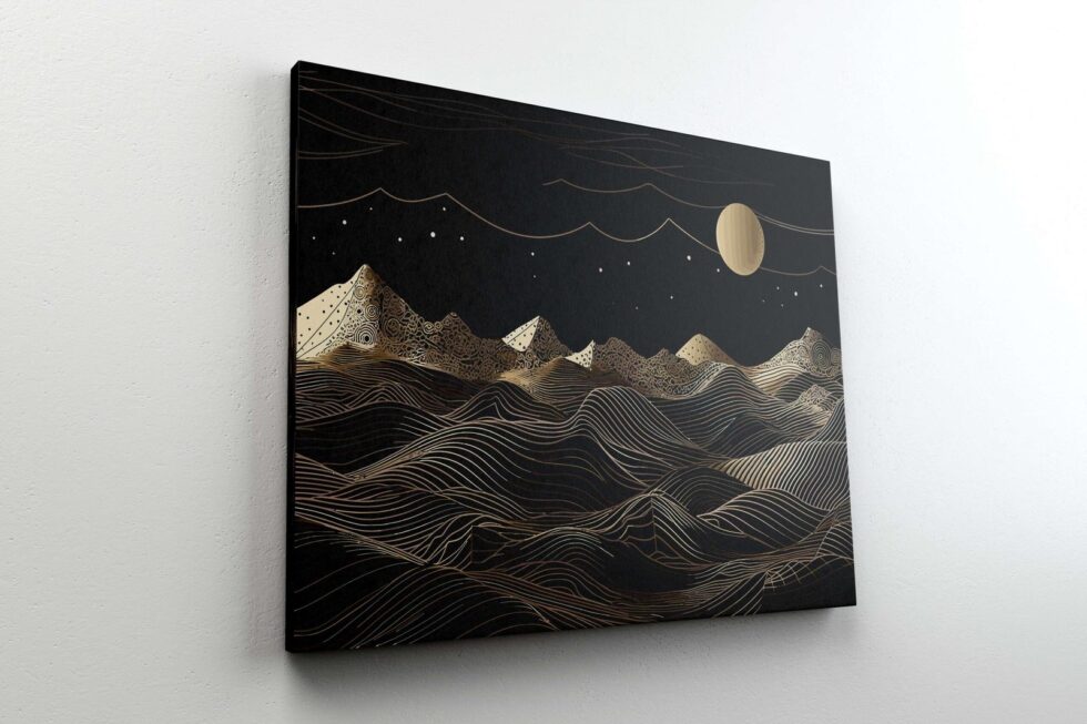 Sophisticated, circular golden frame artwork that suits any modern decor.